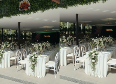 Contamos con todo el mobiliario necesario —mesas, sillas, mantelería, iluminación y mucho más— para crear una atmósfera cómoda, elegante y con ese toque especial que hará de tu evento una experiencia inolvidable.